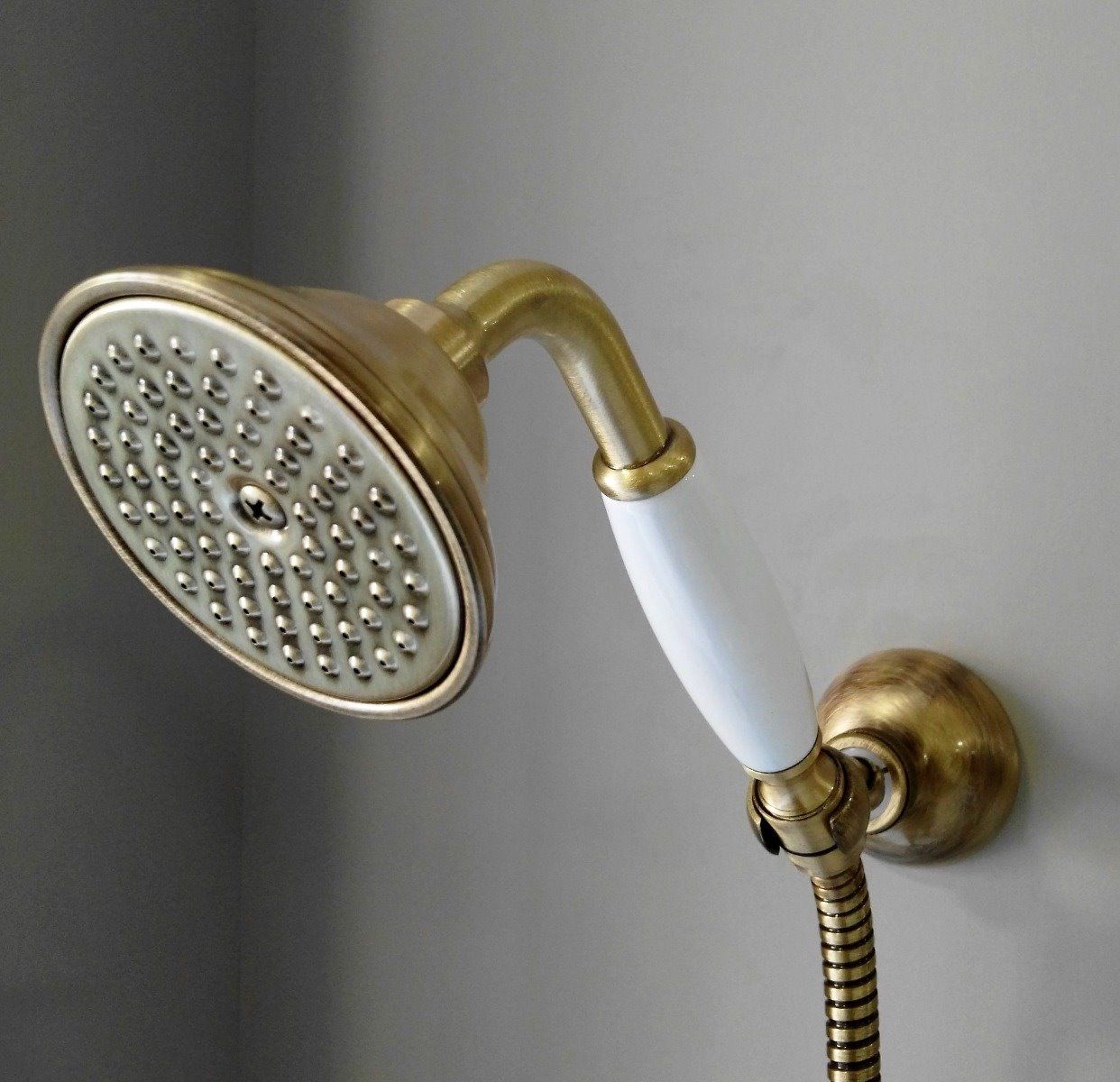 Τηλέφωνο Ντους Χειρός Ρετρό Μπρονζέ Λευκό Πορσελανάκι Gaboli Fratelli LI170.