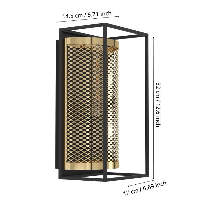 Φωτιστικό Απλίκα Μονόφωτο 1xE27 L170xΑ145xH320mm Μέταλλο Black-Brass Eglo Nohaeles 43789