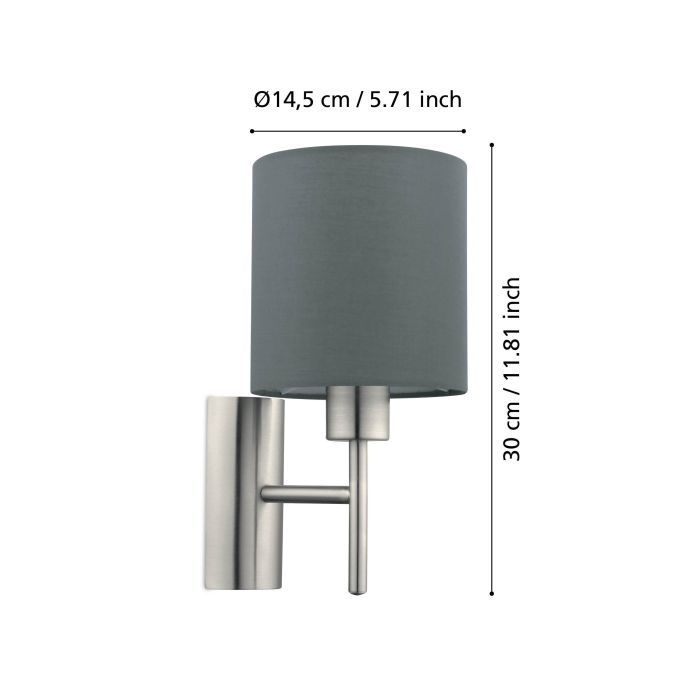 Φωτιστικό Απλίκα 1xE27 L145xA195xH305mm Νίκελ Ματ- Ύφασμα Γκρι Eglο Pasteri 94926