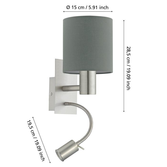 Φωτιστικό Απλίκα 1xE27+Led 1x3,8w Warm White 320lm L150xA195xH380mm Νίκελ Ματ- Ύφασμα Γκρι Eglο Pasteri 96479