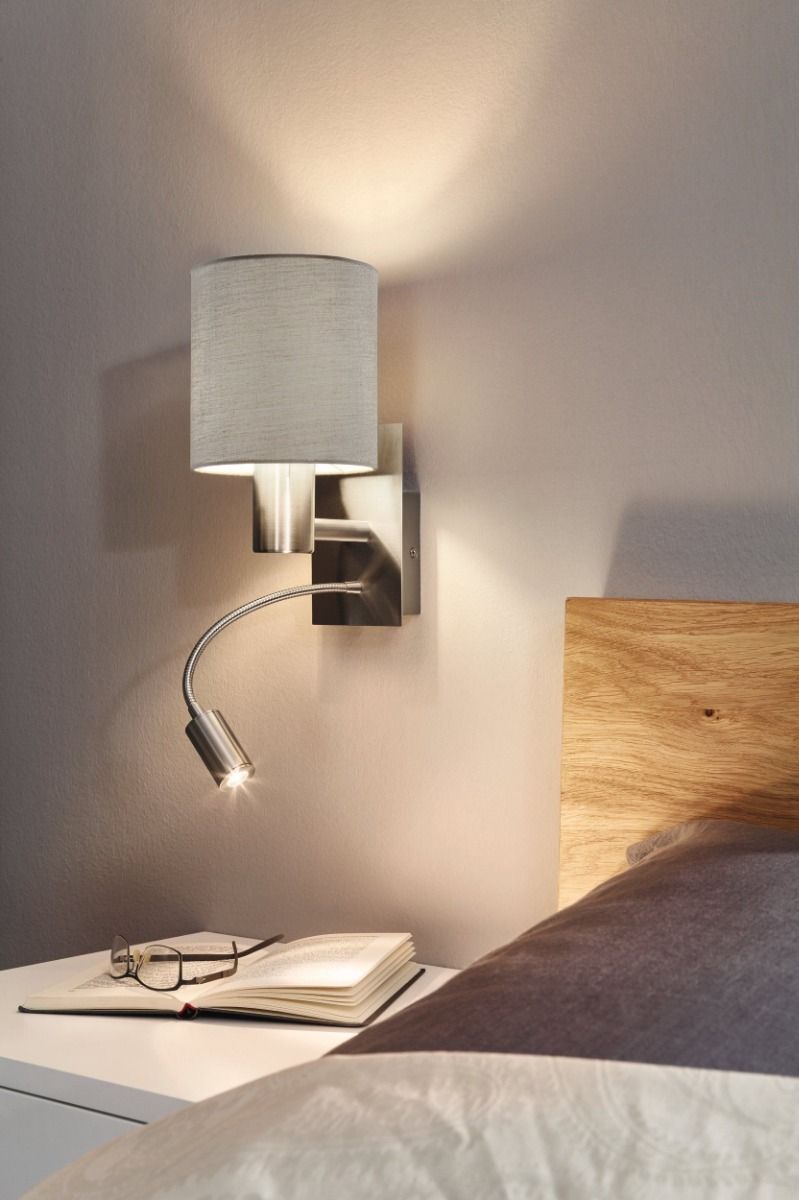 Φωτιστικό Απλίκα 1xE27+Led 1x3,8w Warm White 320lm L150xA195xH380mm Νίκελ Ματ- Ύφασμα Taupe Eglο Pasteri 96478