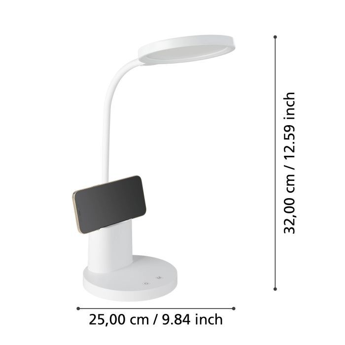 Φωτιστικό Γραφείου Επαναφορτιζόμενο USB Λευκό 15xH55cm ε Εύκαμπτο Βραχίονα LED 2700-6500K 300lm Eglo Brolini 900529