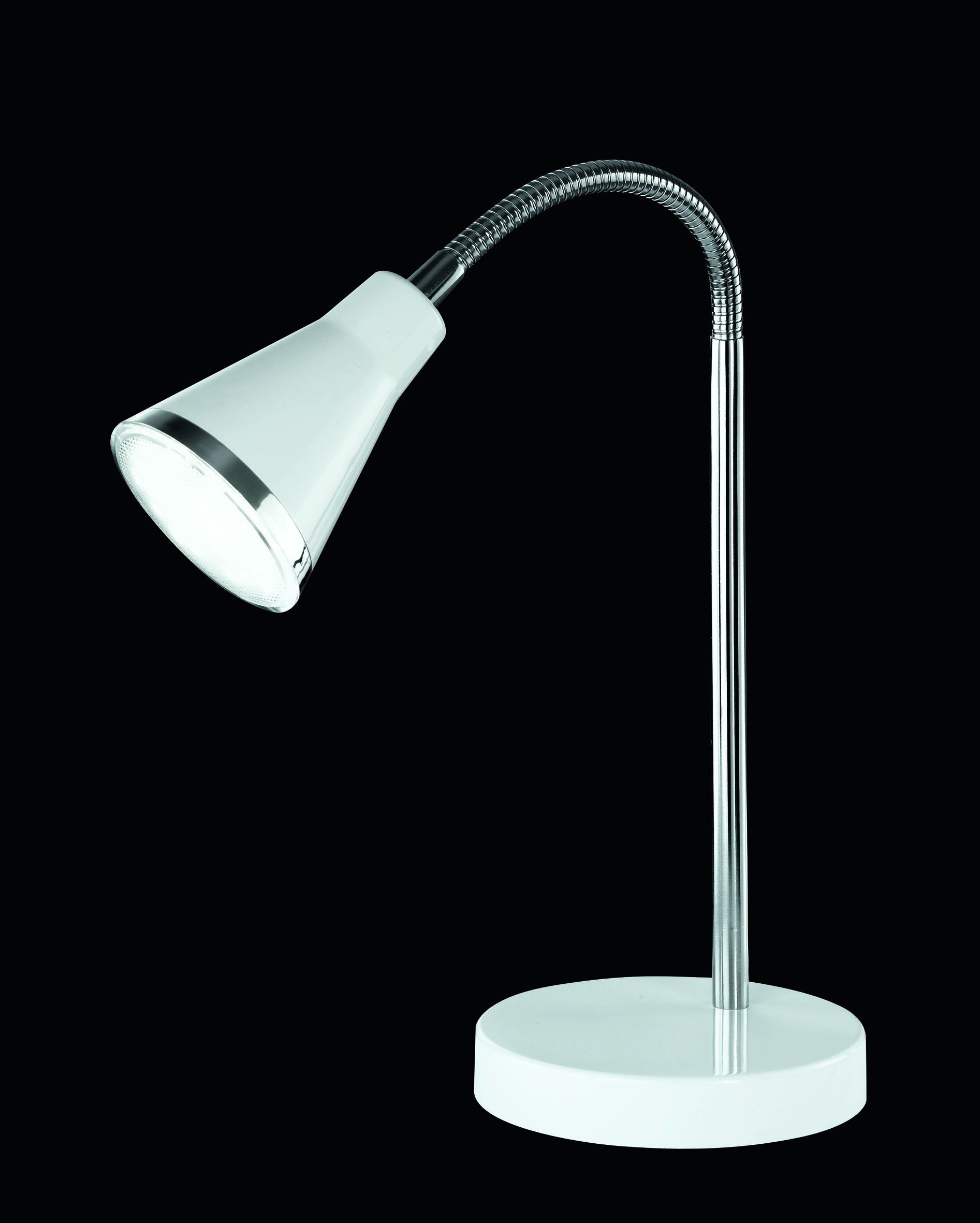 Φωτιστικό γραφείου της Trio Lighting με ενσωματωμένο LED και εύκαμπτο βραχίονα, σε λευκό χρώμα.