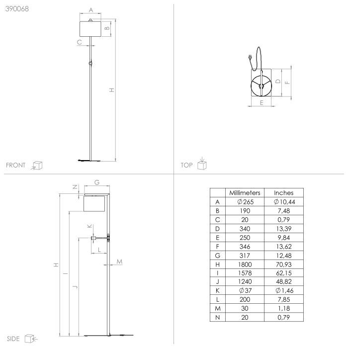 Φωτιστικό Δαπέδου Μαύρο 34,5x26,5xH180cm 1xE27 με Σποτ Διαβάσματος Eglo Foligno 390068