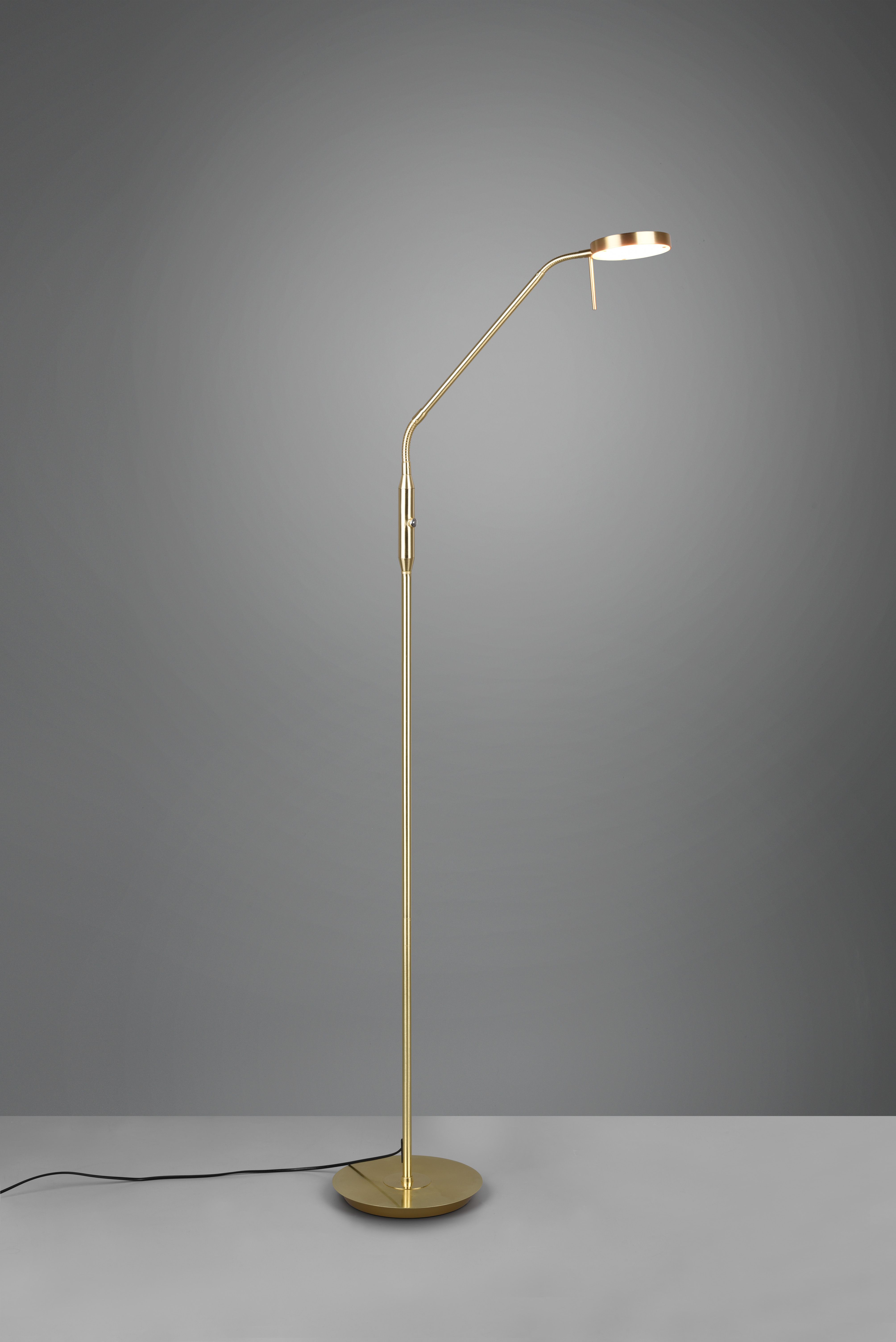 Φωτιστικό δαπέδου Monza της Trio Lighting σε χρυσό χρώμα, με ενσωματωμένο LED. Το ενσωματωμένο LED εκπέμπει θερμό λευκό φως, το οποίο αποδίδεται στην κλίμακα Kelvin με τιμές από 2400Κ έως 3000Κ. Αυτοί οι τόνοι του λευκού είναι πιο πορτοκαλί σε σχέση με το φυσικό φώς.