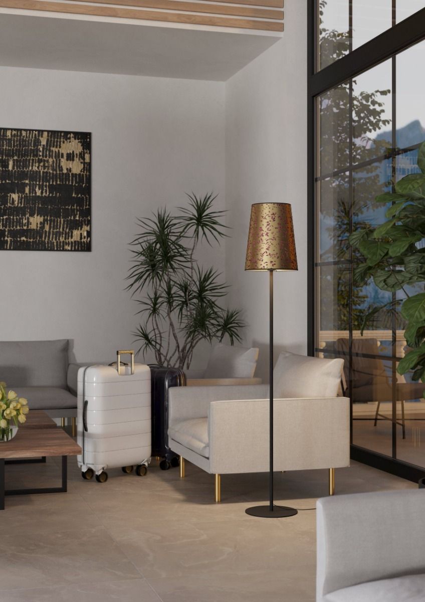 Φωτιστικό Δαπέδου D30xH172,5cm 1xE27 σε Μαύρο-Πολύχρωμο Αμπαζούρ Eglo Castuera 390295