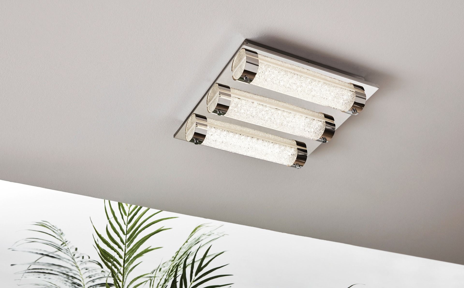 Φωτιστικό Επίτοιχο/Οροφής Μπάνιου 35*35cm Τρίφωτη IP44 Led 21w Nerutral White 3000lm Χρωμέ/Γυαλί-Κρύσταλλο Eglo Tolorico 97056
