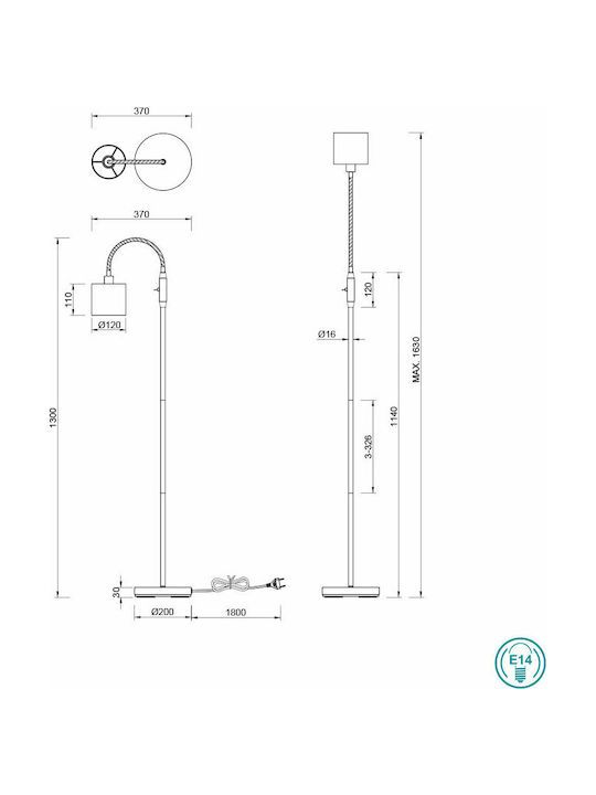 Φωτιστικό Επιδαπέδιο Ø20xH130cm 1xE14 Μονόφωτο Μαύρο-Χρυσό Trio Tommy R46331079