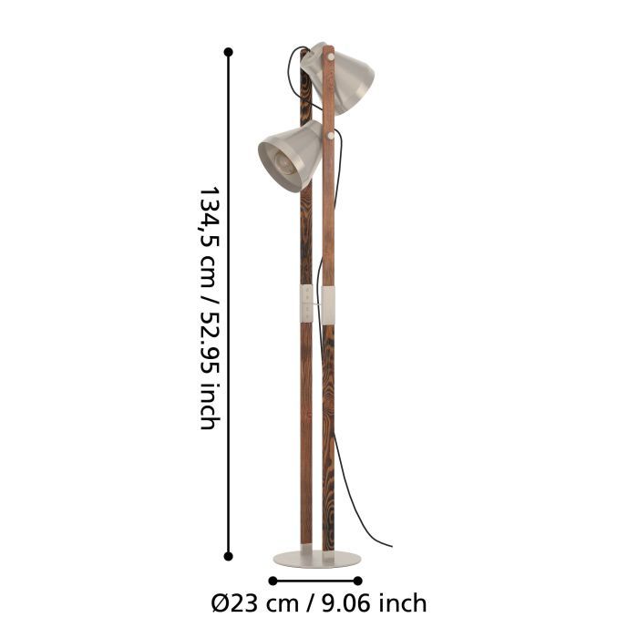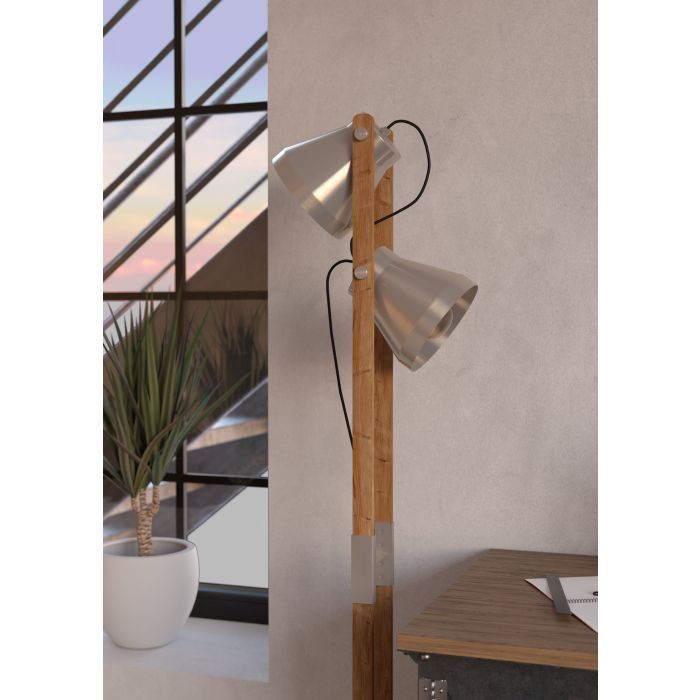 Φωτιστικό Επιδαπέδιο Δίφωτο 2xE27 Ø230xL290xH1345mm Χάλυβας-Ξύλο Ρουστίκ Καφέ Eglo Cawton 43954
