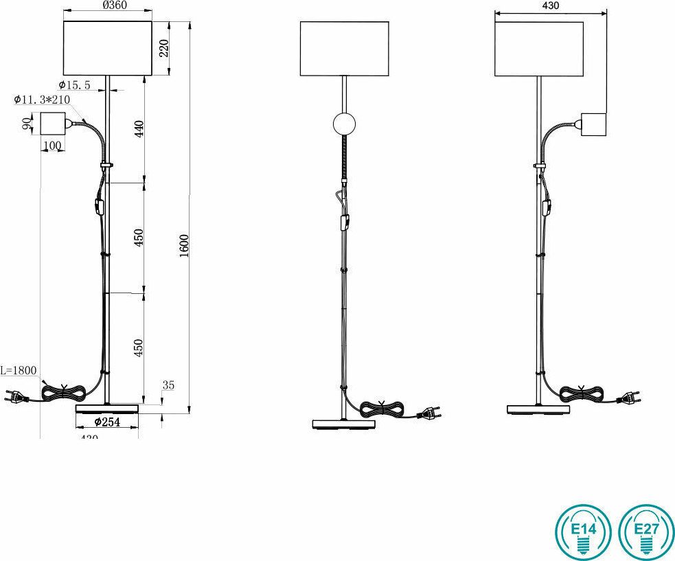 Φωτιστικό Επιδαπέδιο Υ160 εκ. Μέταλλο Υφασμα Μαύρο Trio Lighting RL Owen R40192002