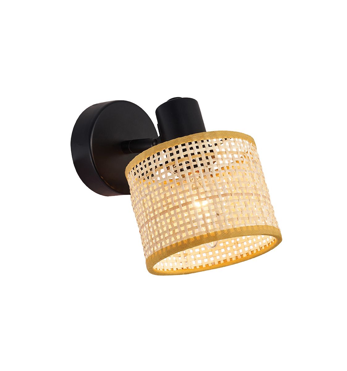 Fabric and rattan shades in natural color with black fittings.