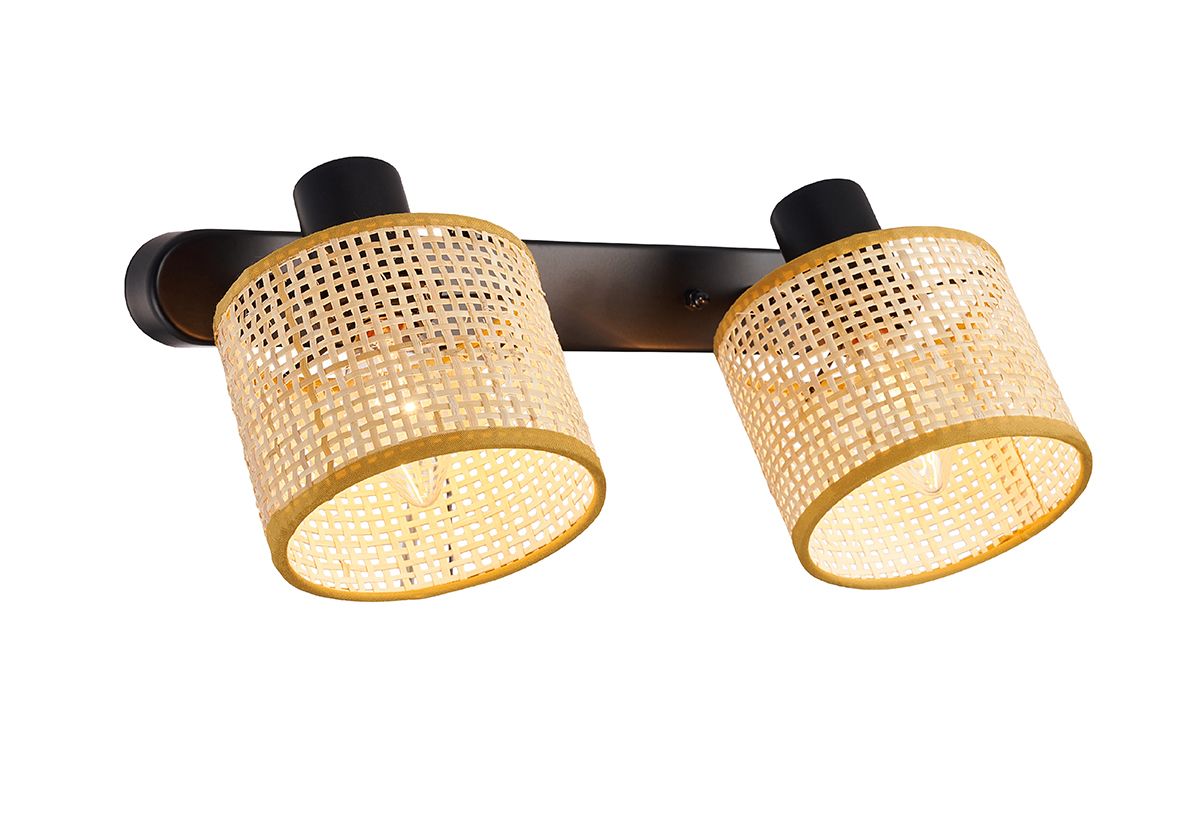 Φωτιστικό Επιτοίχιο L310xP200xY150mm 2xE14 Μαύρο- Ύφασμα-Ράταν Φυσικό Viokef Erica 4274800