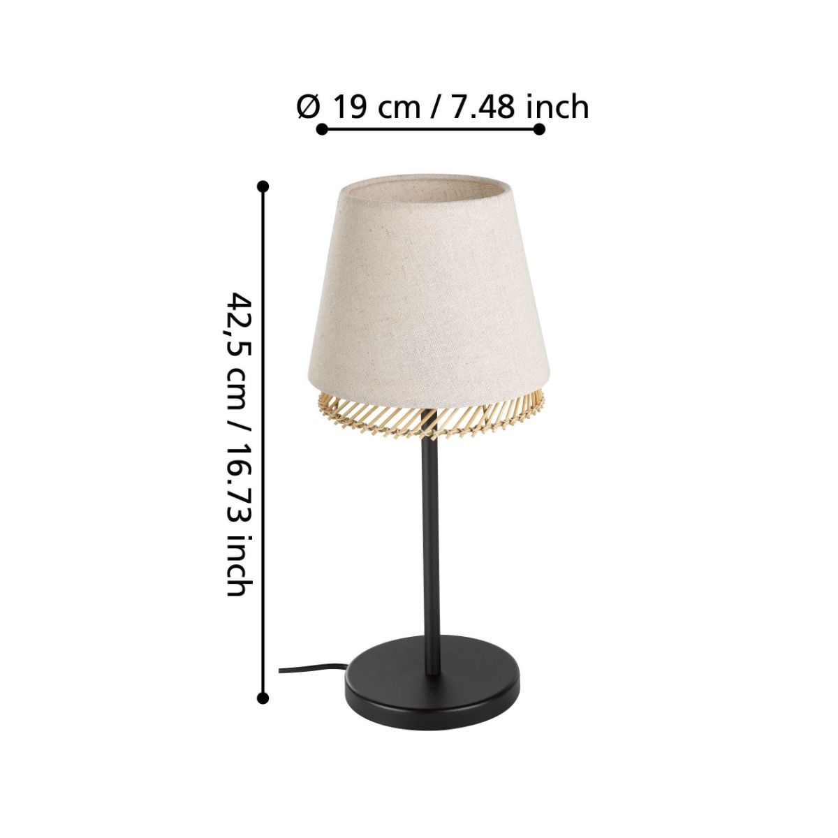 Φωτιστικό Επιτραπέζιο Λαμπατέρ Ø145xØΒ190xH425mm Μονόφωτο 1xE27 Μέταλλο-Ξύλο-Ύφασμα Eglo Tabley 43977