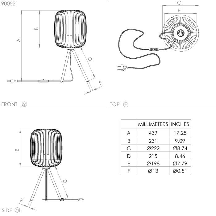 Φωτιστικό Επιτραπέζιο Τρίποδο Ø25xxH435mm 1xE27 Μαύρο-Μπεζ Eglo Romazzina 900521