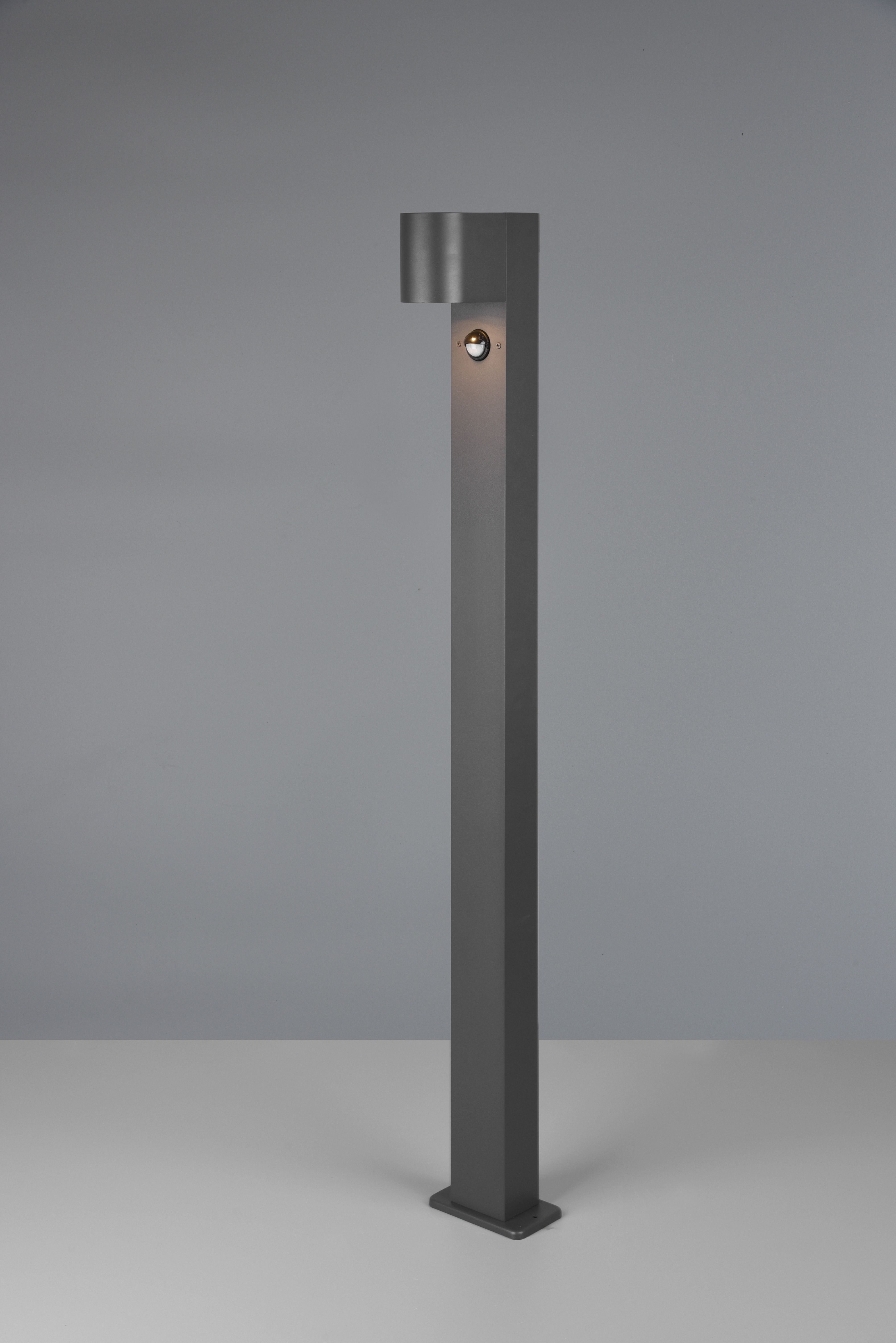 Κολωνάκι φωτισμού της Trio Lighting σε γκρι χρώμα, για χρήση σε εξωτερικούς χώρους. Διαθέτει βαθμό προστασίας IP44, που δηλώνει ότι δεν μπορούν να εισχωρήσουν στερεά αντικείμενα άνω του ενός χιλιοστού αλλά ούτε και νερό με μεγάλη ένταση.