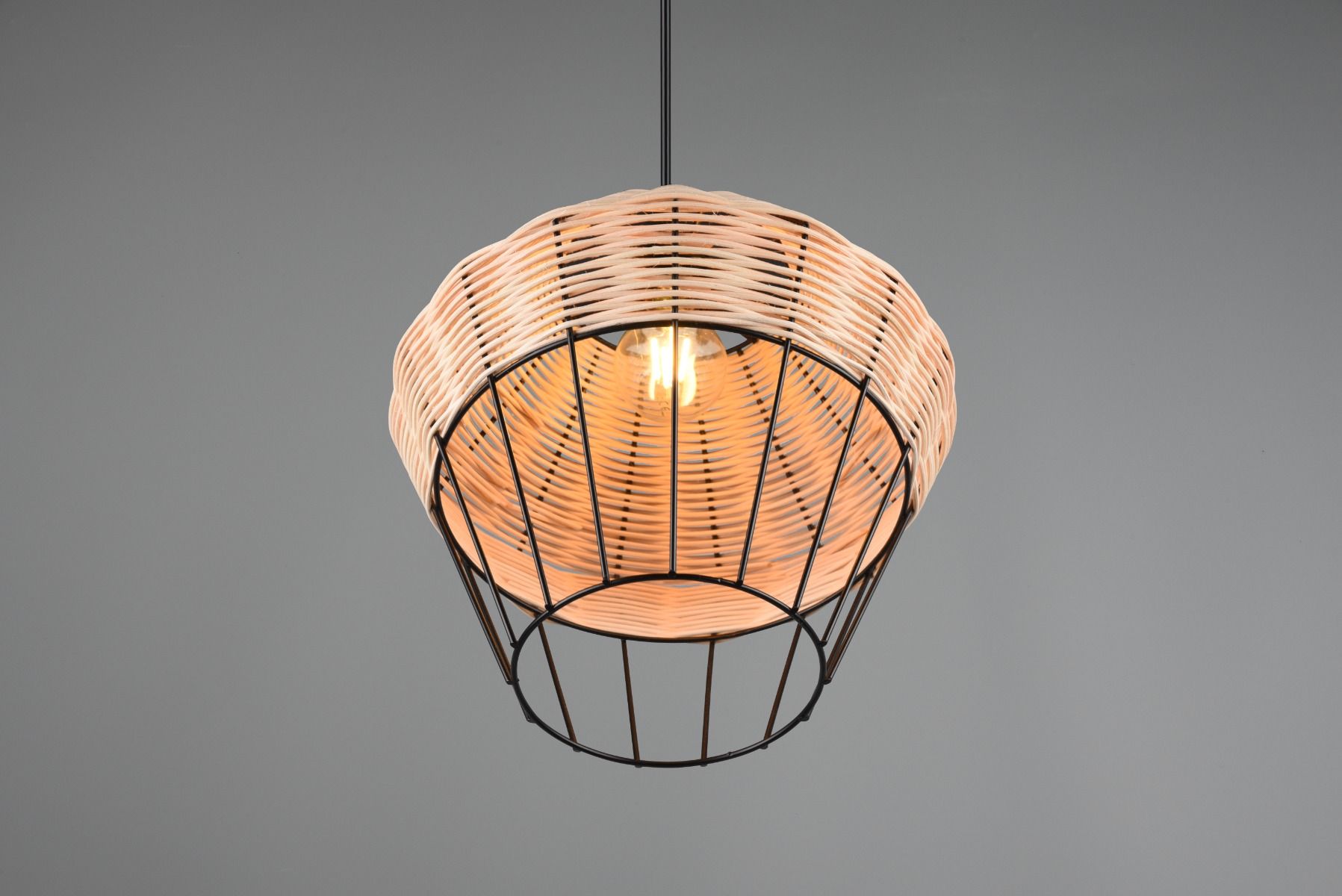 Φωτιστικό Κρεμαστό Ø17xΗ150cm 1xE27 Ράταν Φυσικό-Μαύρο Trio Borka R31261036