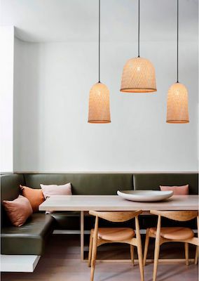 Φωτιστικό Κρεμαστό Ø25 εκ.1xE27 Rattan Φυσικό Χρώμα-Μαύρη Ανάρτηση Viokef Casper 4253200
