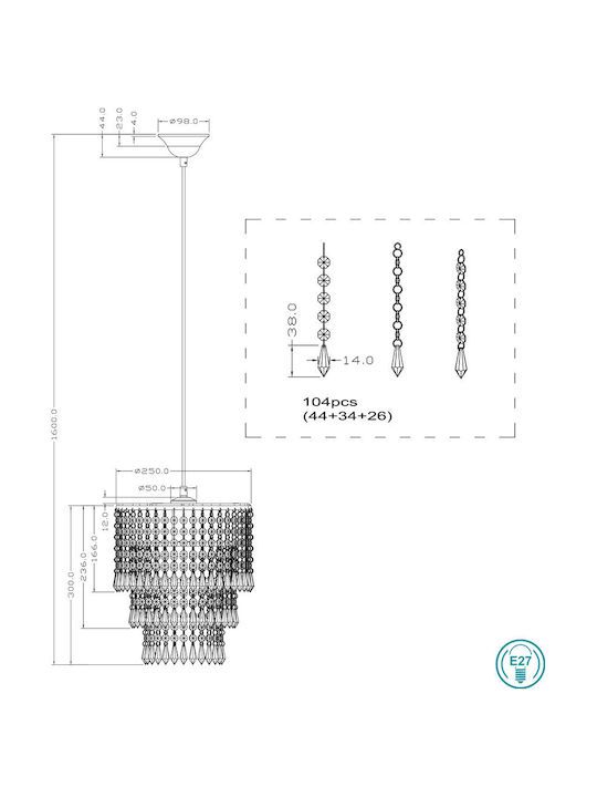 Περιγραφή: Φωτιστικό Κρεμαστό Μονόφωτο