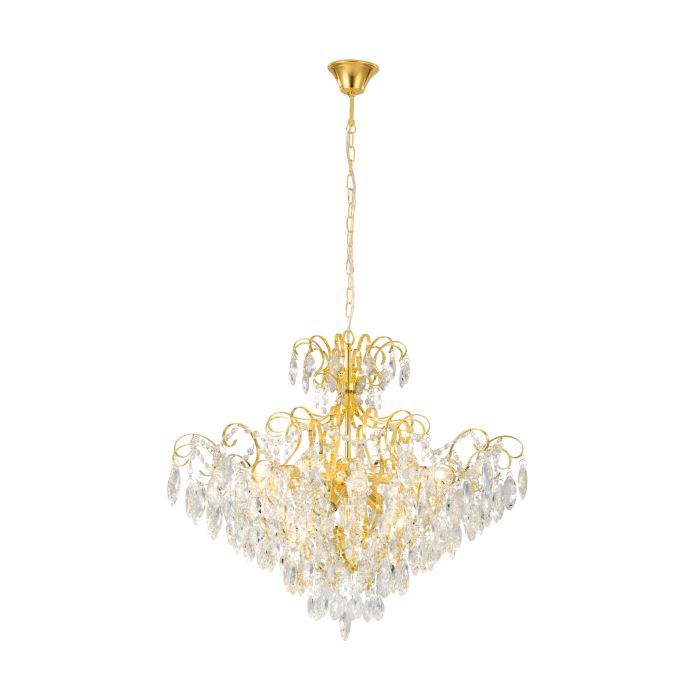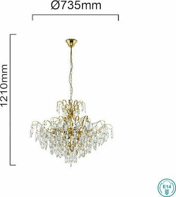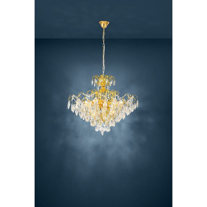 Φωτιστικό Κρεμαστό Ø73,5 εκ. Εννιάφωτο 9*Ε14 Ορείχαλκος -Διάφανα Κρύσταλλα Eglo Fenoullet 39606