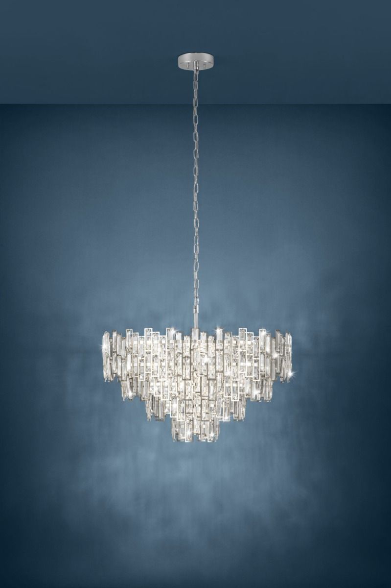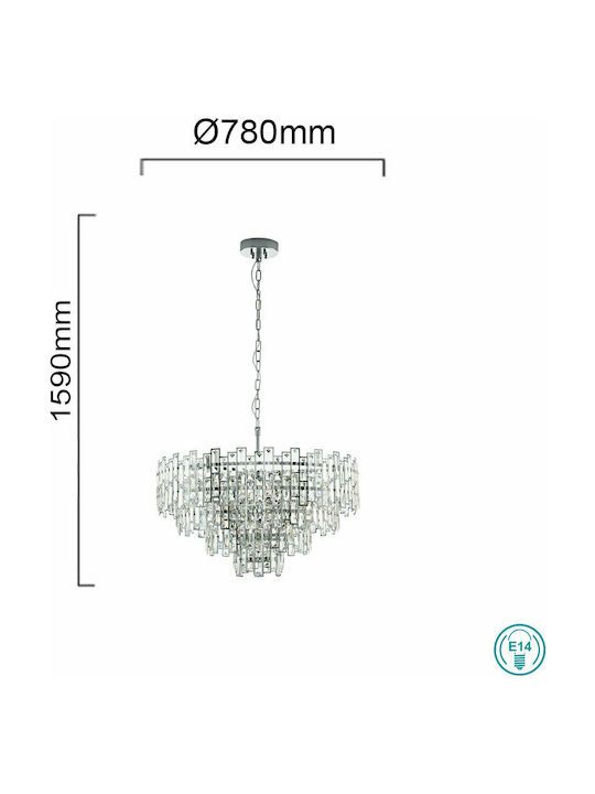 Φωτιστικό Κρεμαστό Ø780xH1590 mm 10xΕ14 Χρωμέ-Διάφανα Κρύσταλλα Eglo Calmeilles 1 39627