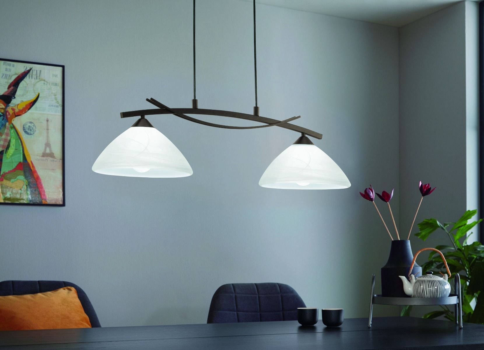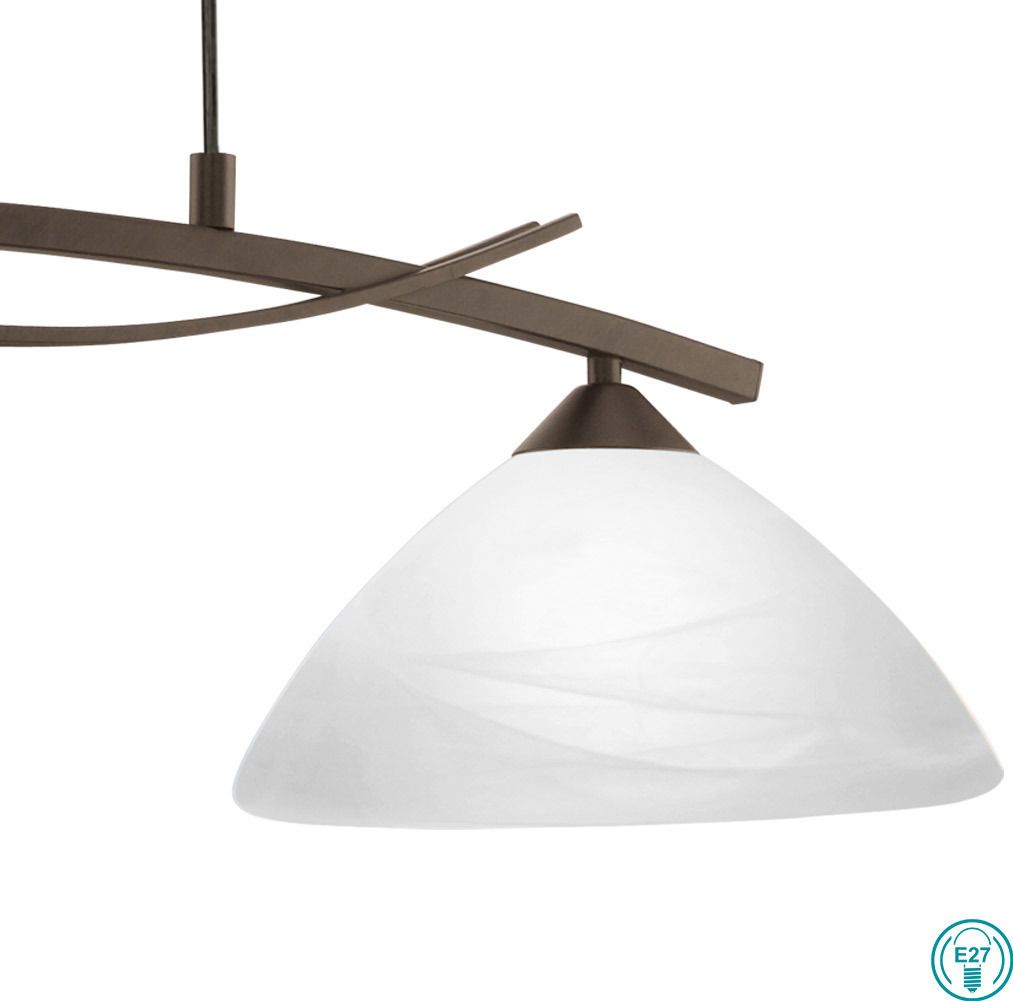 Φωτιστικό Κρεμαστό Δίφωτο Ø77 cm Ατσάλι Καφέ Σκούρο Γυαλί Λευκό Αλάβαστρο Eglo Vinovo 91433
