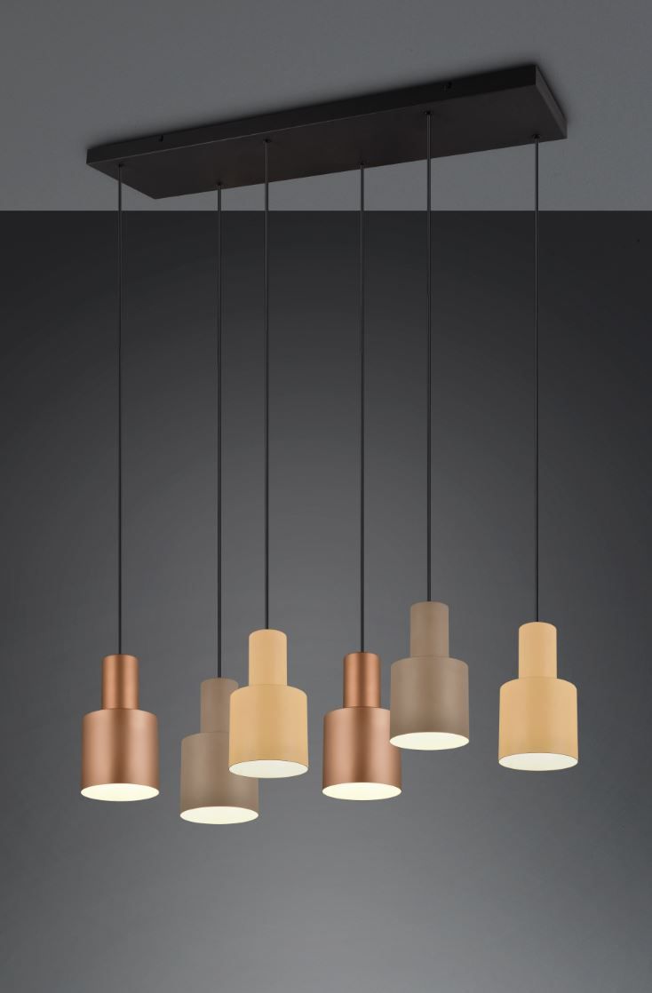 Φωτιστικό Κρεμαστό Εξάφωτο Ράγα L85x27xH150cm 6xE27 Μέταλλο Μαύρο Ματ- Αμπαζούρ Καφέ Trio Lighting Agudo 319400617