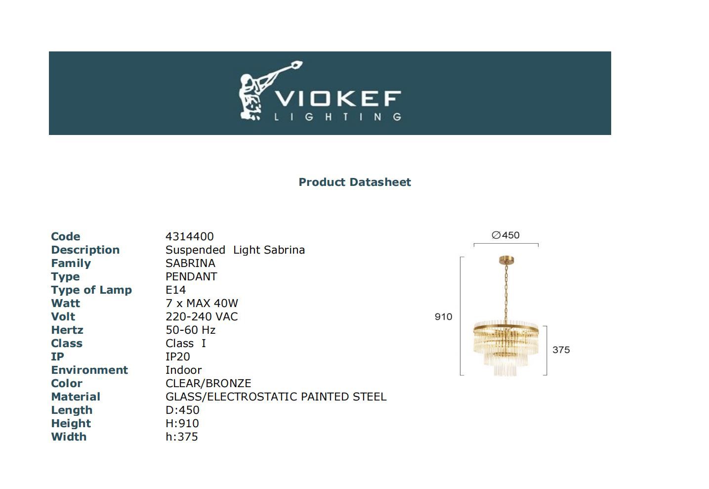 Κρεμαστό Φωτιστικό Sabrina Viokef 4314400