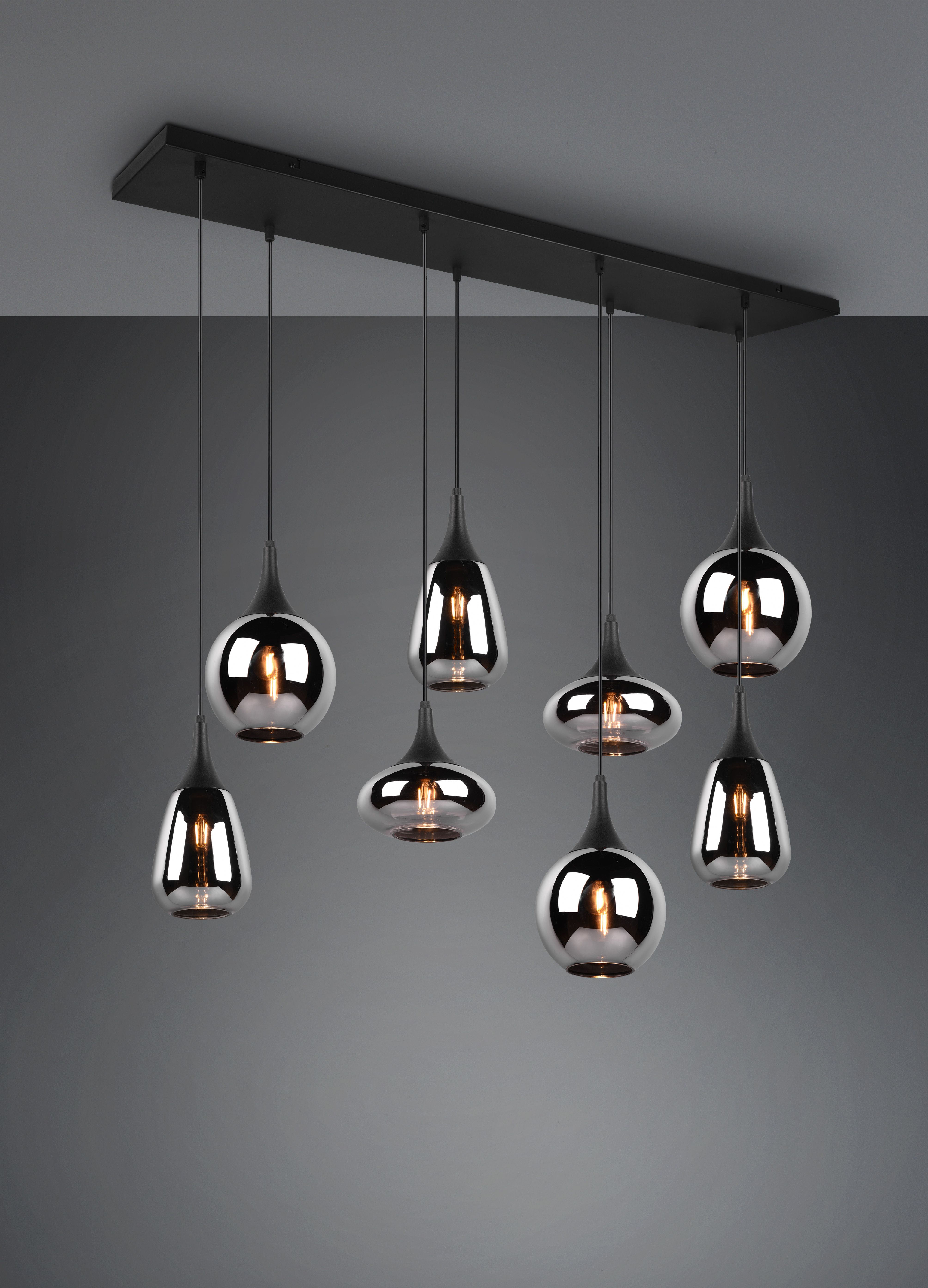 Φωτιστικό Κρεμαστό Μοντέρνο Οκτάφωτη Ράγα 121xH150cm 8xE14 Μαύρο Χρώμα Trio Lighting Lumina 317000832