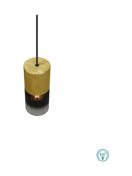 Φωτιστικό Κρεμαστό Μονόφωτο Ø10xY150cm 1xE27 Μπρονζέ Ματ -Φιμέ Γυαλί Trio Lighting Robin 310600154
