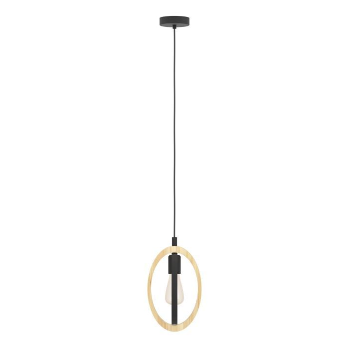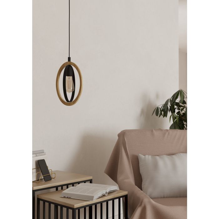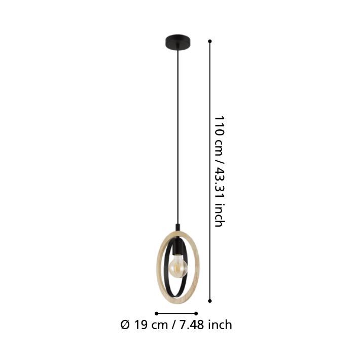 Φωτιστικό Κρεμαστό Μονόφωτο Ø190xH1100mm 1xE27 Μέταλλο Μαύρο-Ξύλο Eglo Basildon 43461