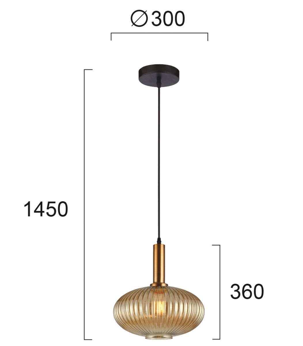 Φωτιστικό Κρεμαστό Μονόφωτο Ø300x360xΗ1450mm 1xE27 Ανάγλυφο Γυαλί Μελί Viokef Sophie 4233500
