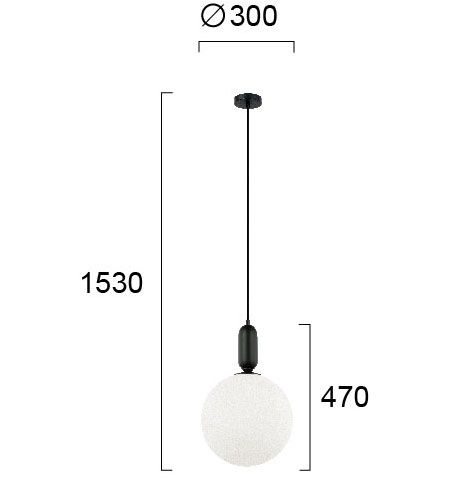 Φωτιστικό Κρεμαστό Μονόφωτο Ø300x470xH1530mm Λευκό Οπάλ Γυαλί-Ανάρτηση Μαύρη Viokef Neptune 4230601