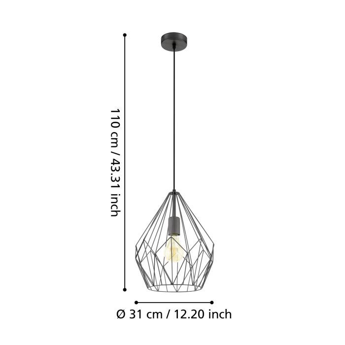 Φωτιστικό Κρεμαστό Μονόφωτο Ø310xH1100mm 1xE27 Μέταλλο Black Eglo Carlton 49257