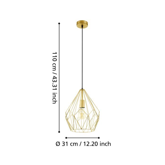 Φωτιστικό Κρεμαστό Μονόφωτο Ø310xH1100mm 1xE27 Μέταλλο Gold Eglo Carlton 49933