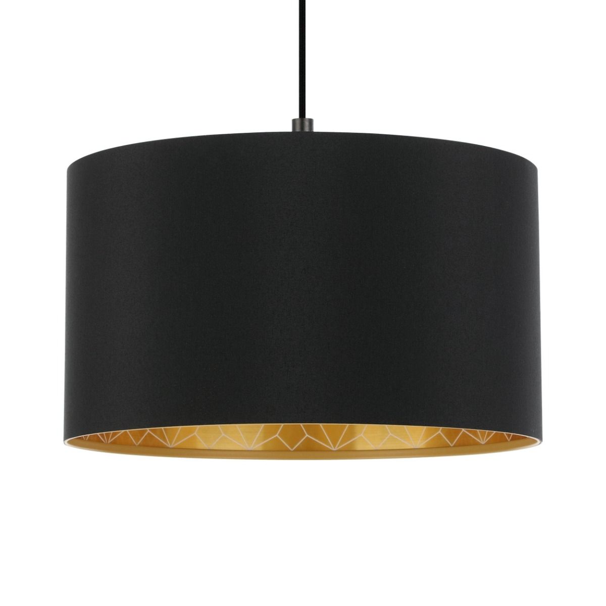 Φωτιστικό Κρεμαστό Μονόφωτο Ø380xΗ1100mm 1xE27 ΄Υφασμα με Ντεκόρ Μαύρο-Χρυσό Eglo Zaragoza 900145