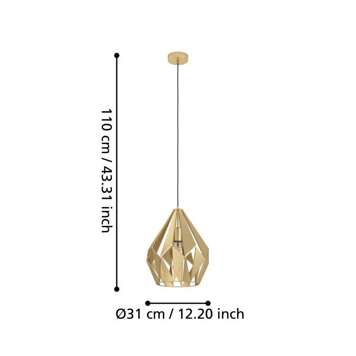 Φωτιστικό Κρεμαστό Μονόφωτο 1xE27 Ø310xH1100mm Μέταλλο Χρώμα Χρυσαφί Eglo Carlton 43814