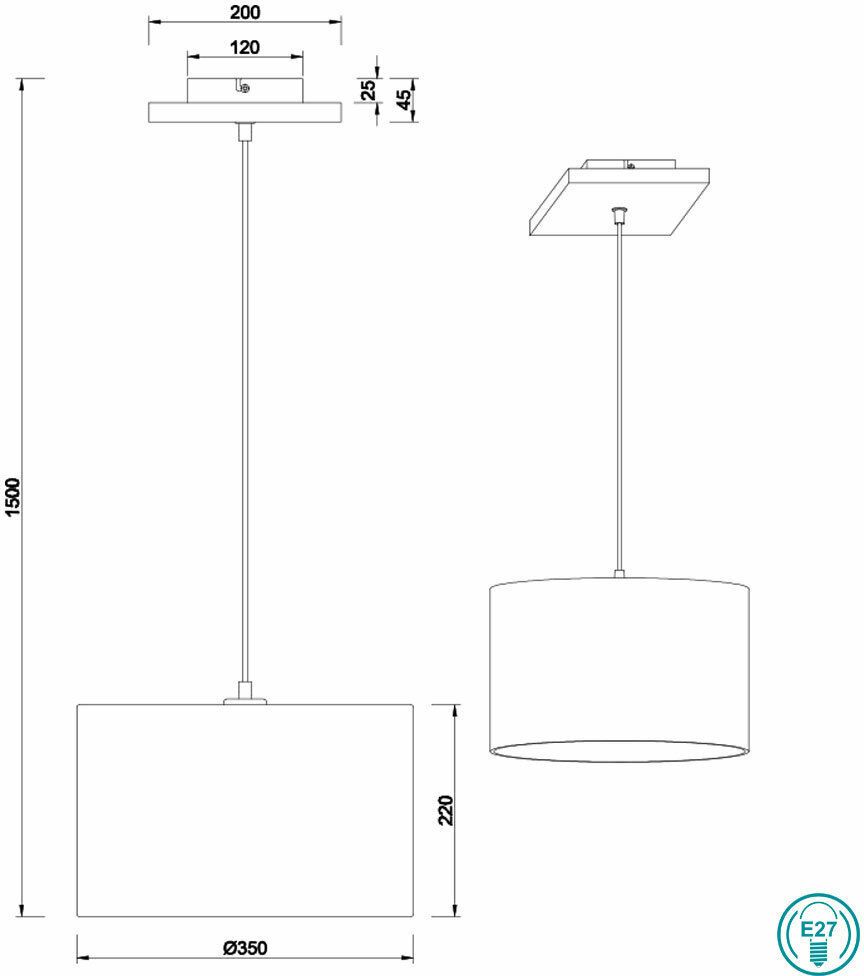 Φωτιστικό Κρεμαστό Μονόφωτο 1xE27 Ø35xH150cm Ξύλο-Αμπαζούρ Υφασμάτινο Trio Lighting Elmau 302100130