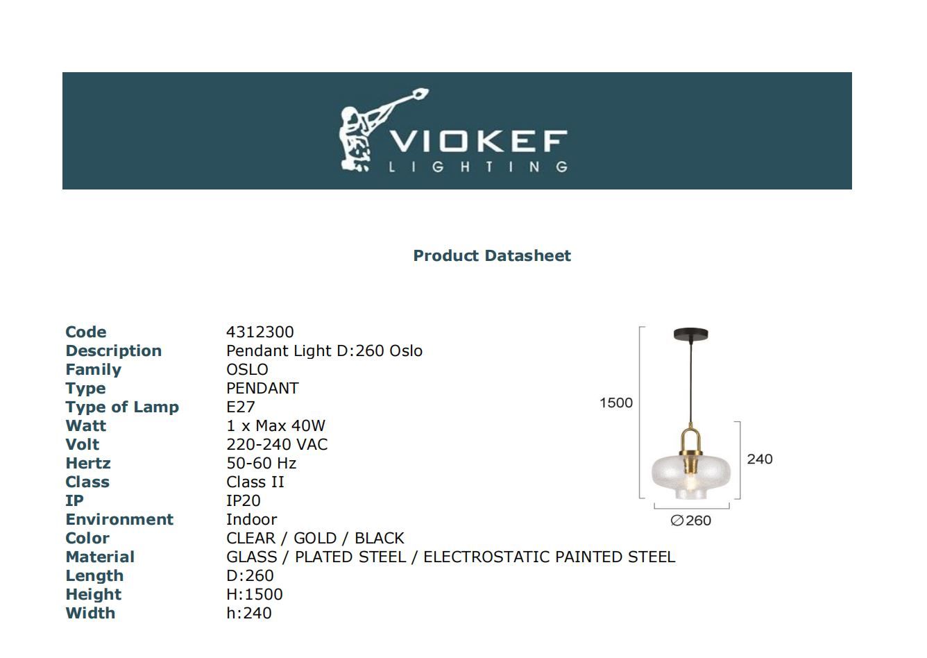 Φωτιστικό Κρεμαστό Μονόφωτο 1xE27 Γυαλί Διάφανο D260xH1500mm Oslo 4312300