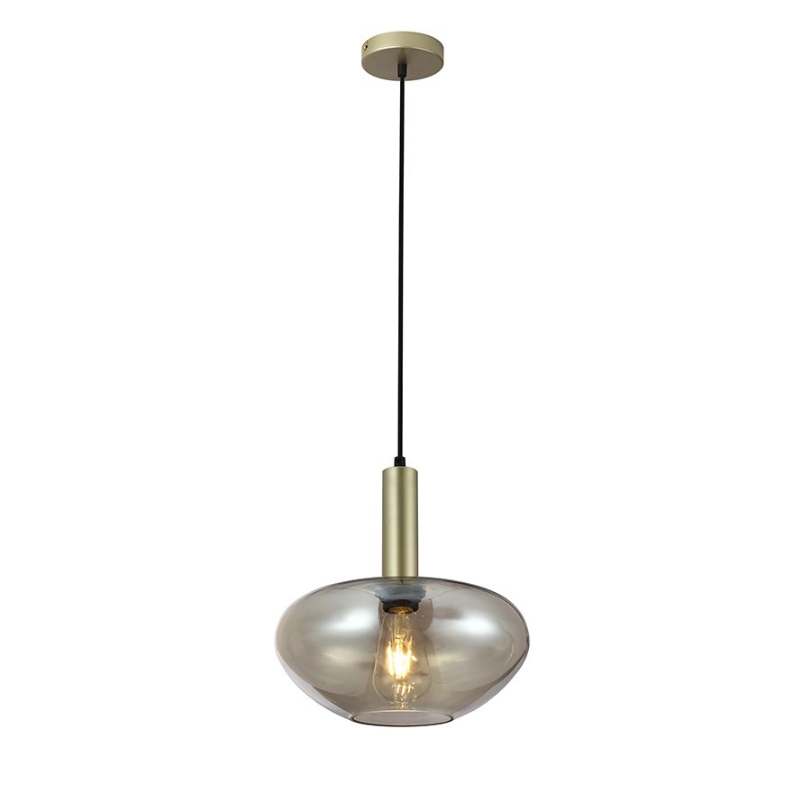 Μονόφωτο κρεμαστό φωτιστικό κατασκευασμένο από χειροποίητο γυαλί σε χρώμα μελί και μέταλλο σε χρυσό ματ. Διάμετρος Γυαλιού : 28 εκ. Ύψος: 120 εκ. Τύπος Λαμπτήρα: E27 Λαμπτήρες: 1 τεμ. Max 60W