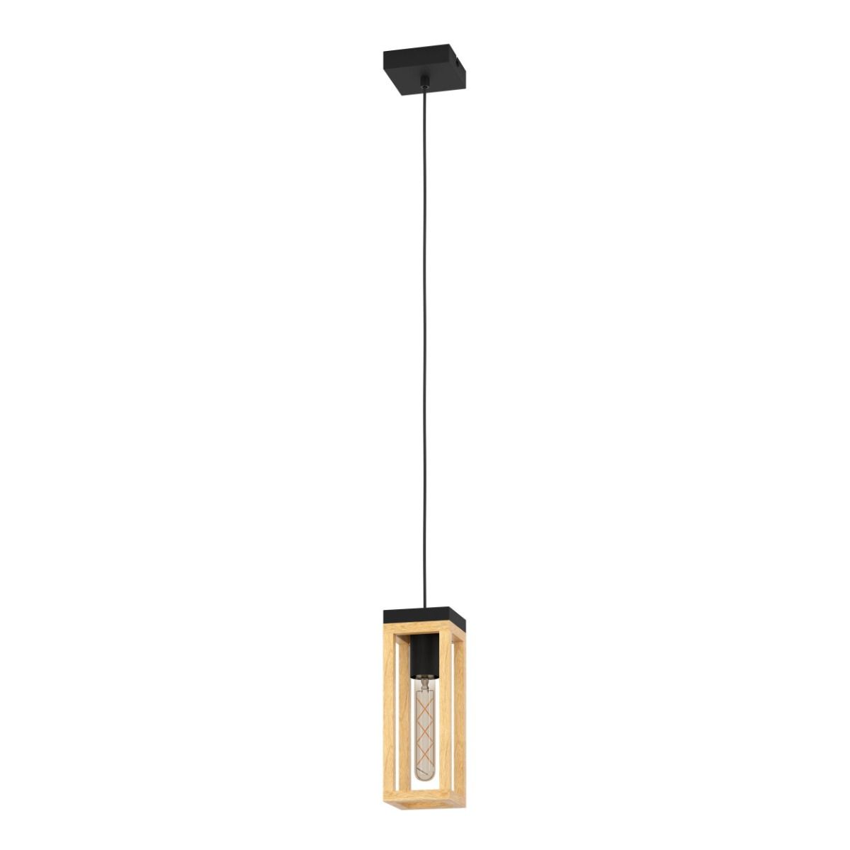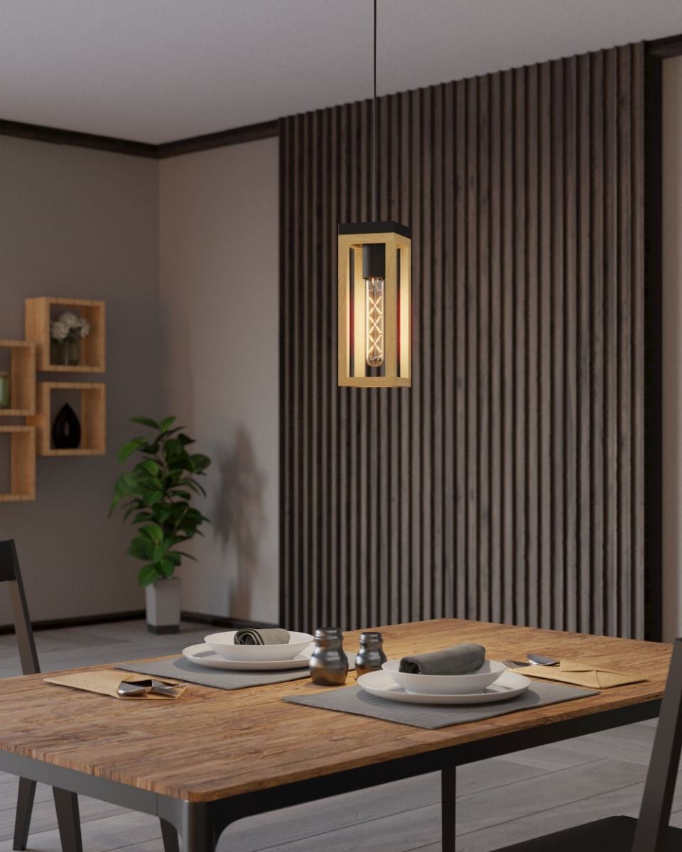 Φωτιστικό Κρεμαστό Μονόφωτο L100xB100xH1100mm 1xE27 Μέταλλο Μαύρο-Ξύλο Φυσικό Eglo Nafferton 43743
