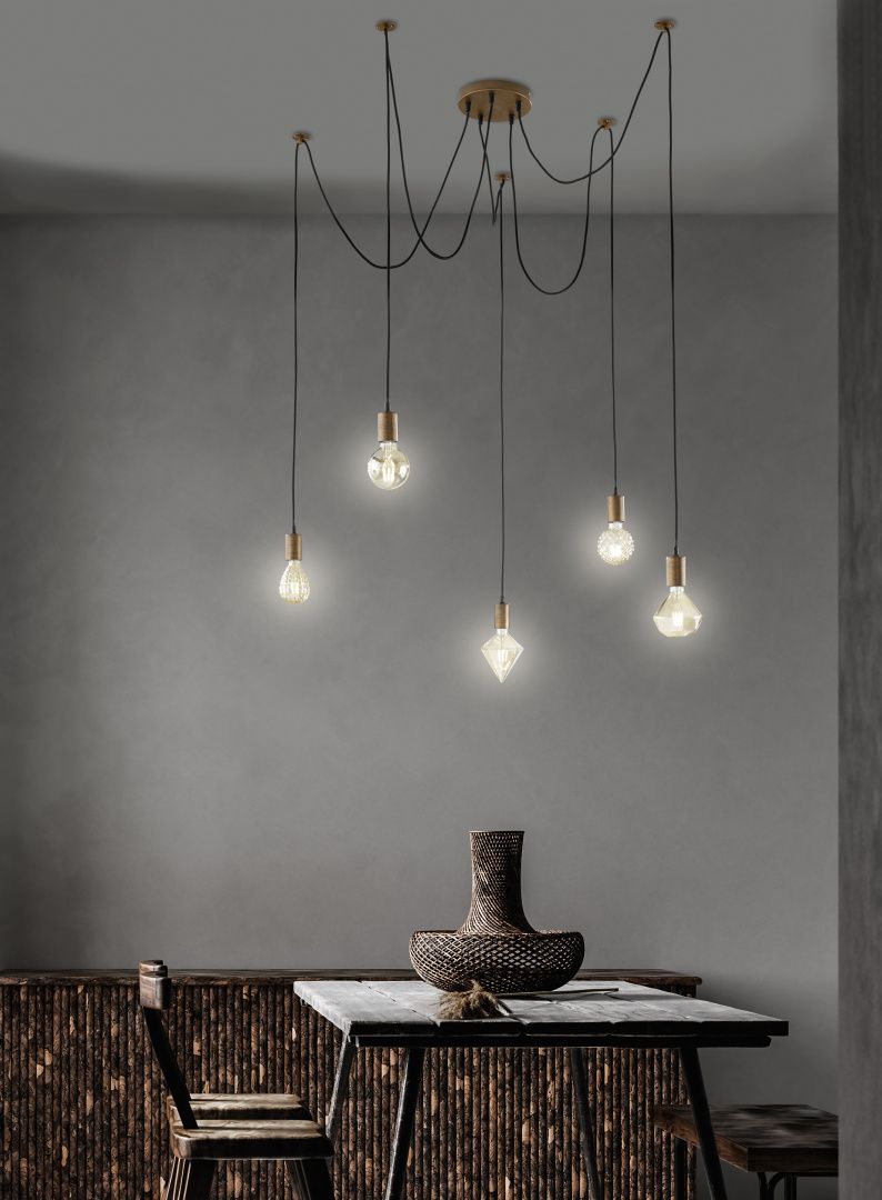 Φωτιστικό Κρεμαστό Πεντάφωτο Ø180H150cm 5xΕ27 Μέταλλο Antique Cooper-Υφασμάτινο Καλώδιο Trio Lighting Cord 310100562