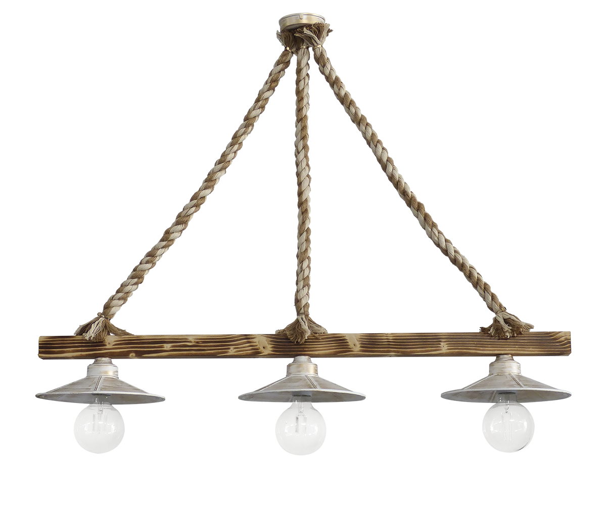 Κρεμαστό φωτιστικό 3/φωτο με ξύλινη ράγα και σχοινιά mix ,