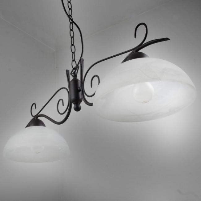 Φωτιστικό Κρεμαστό Ράγα 82 εκ. Δίφωτο Κορμός Καφέ Σκουριάς / Αμπαζούρ Λευκός Αλάβαστρος Trio Country R3432-24.
