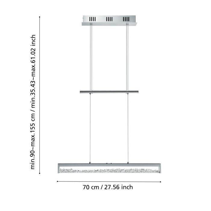 Φωτιστικό Κρεμαστό Ράγα L700xB80xH750-1300mm Dimmable Led 4x6w 2280lm 2700-5000Κ Χρωμέ-Κρύσταλλα Διάφανα Eglo Cardito 1 93625