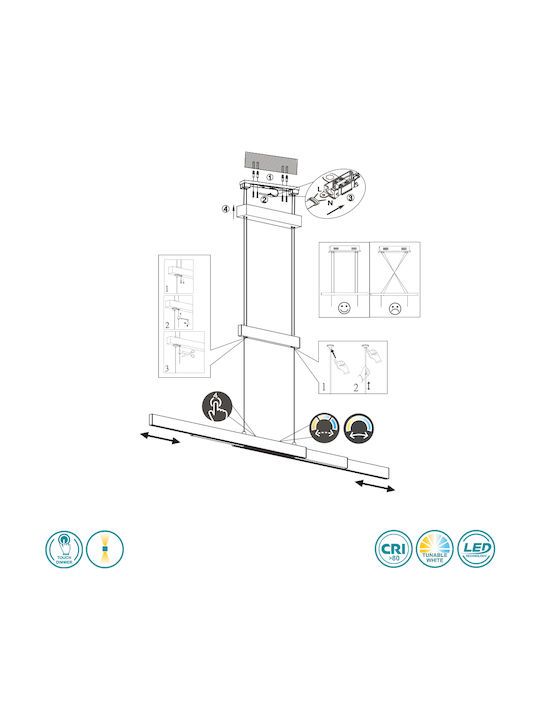 Φωτιστικό Κρεμαστό Ράγα L95xH150cm Led Smd 45w 5300lm 2700-5000K Μέταλλο Μαύρο-Μπρονζέ Ματ Trio Trajan 375310502