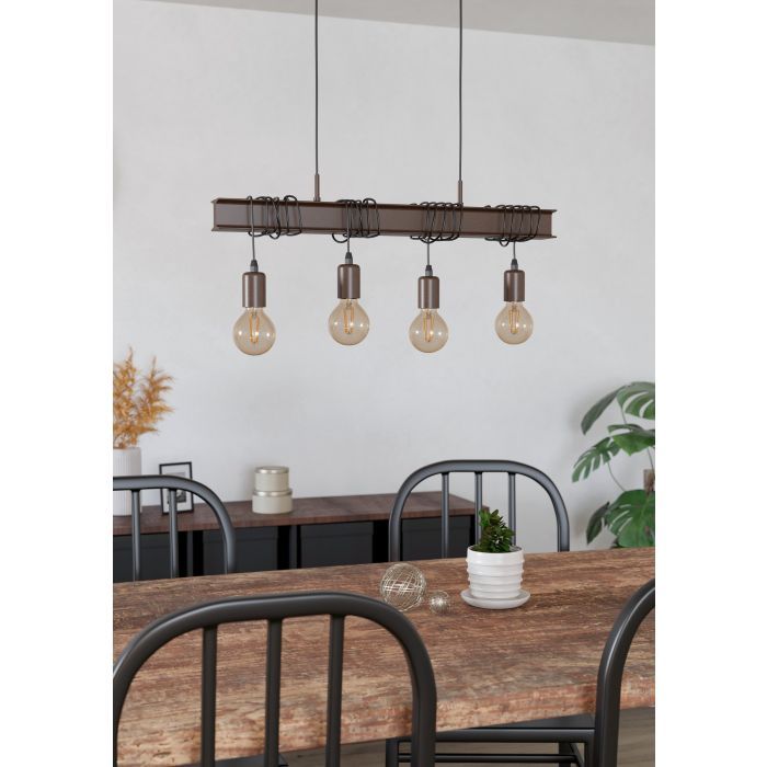 Φωτιστικό Κρεμαστό Τετράφωτο Ράγα L700xH1100mm 4xE27 Καφέ Αντικέ Eglo Townshend 4 43523