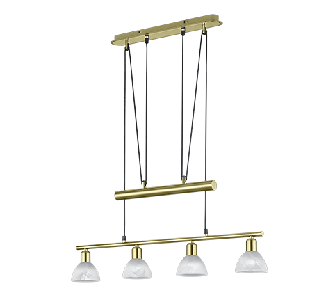 Φωτιστικό Κρεμαστό Τετράφωτο Ράγα L80,5xH 95-160cm Led Ε14 4x14,5w 4x400lm 3000K Brass Mat -Γυαλί Αλάβαστρος Trio Lighting Levisto 371010408