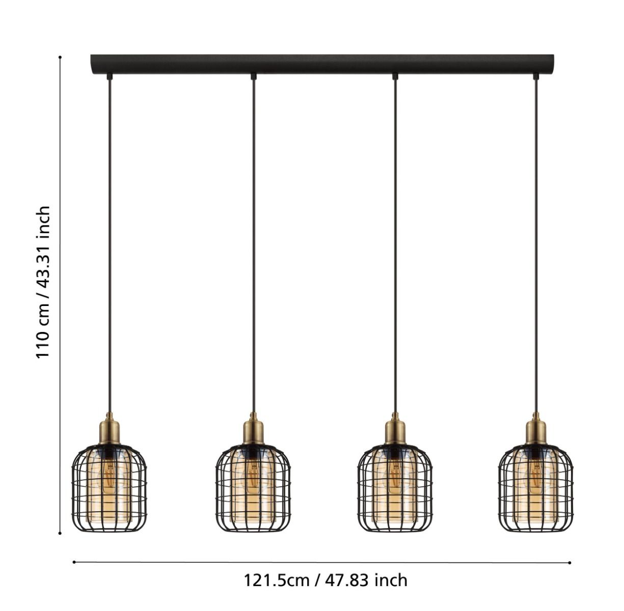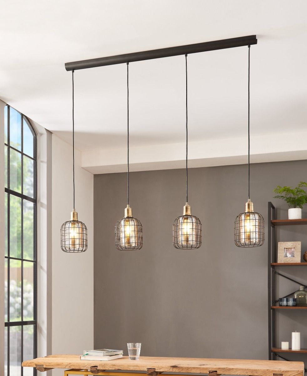 Φωτιστικό Κρεμαστό Τετράφωτο σε Ράγα L1300xΒ165xH1100mm 4xE27 Μαύρο-Μπρονζέ Ατσάλι, Γυαλί Μελί Eglo Chisle 43528