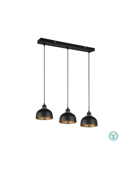 Φωτιστικό Κρεμαστό Τρίφωτο Ράγα L68x18xΗ150cm 3xE27 Μέταλλο Μαύρο Ματ Trio Punch R30813032