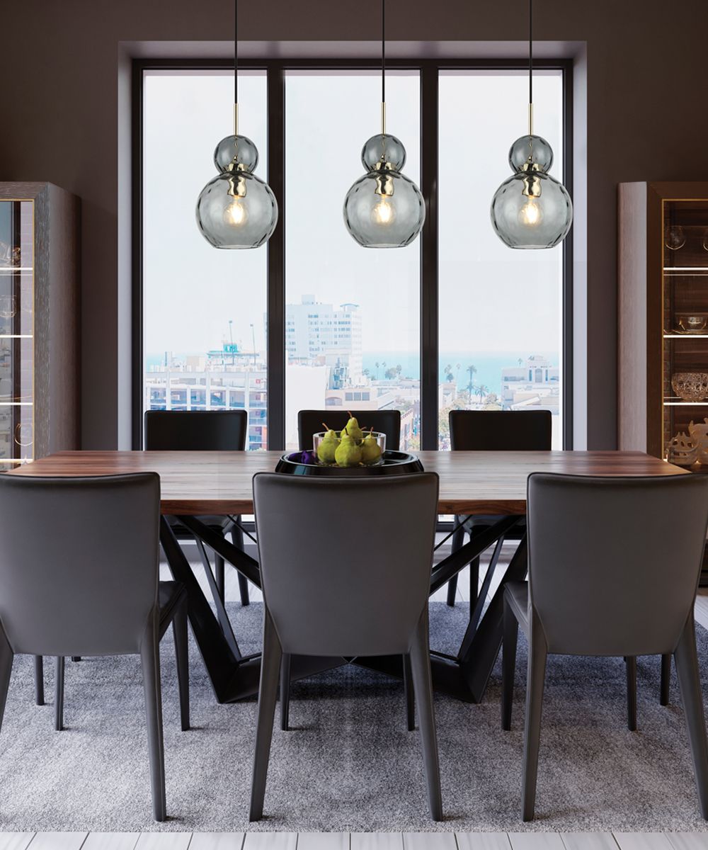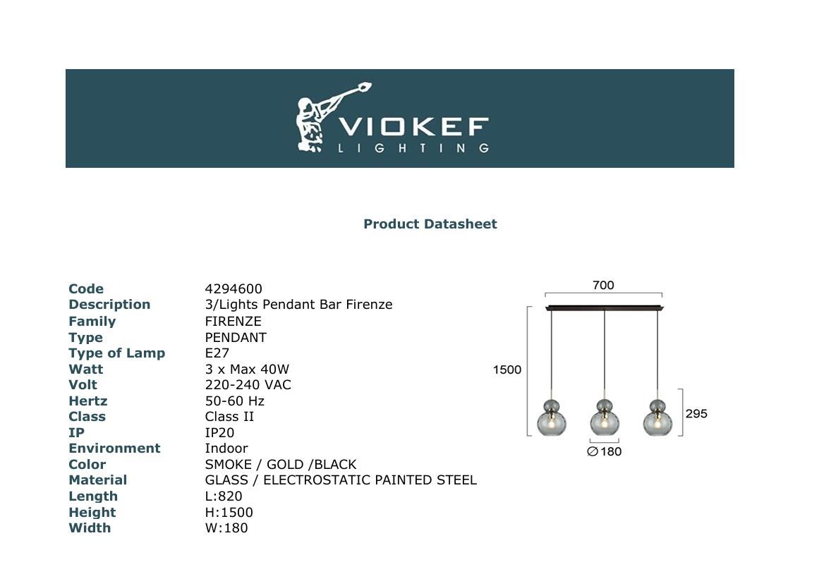 Φωτιστικό Κρεμαστό Τρίφωτο Ράγα L700x H1500mm Ροζέτα 3xE27 Μέταλλο Χρυσαφί-Γυαλί Φιμέ Viokef Firenze 4294600
